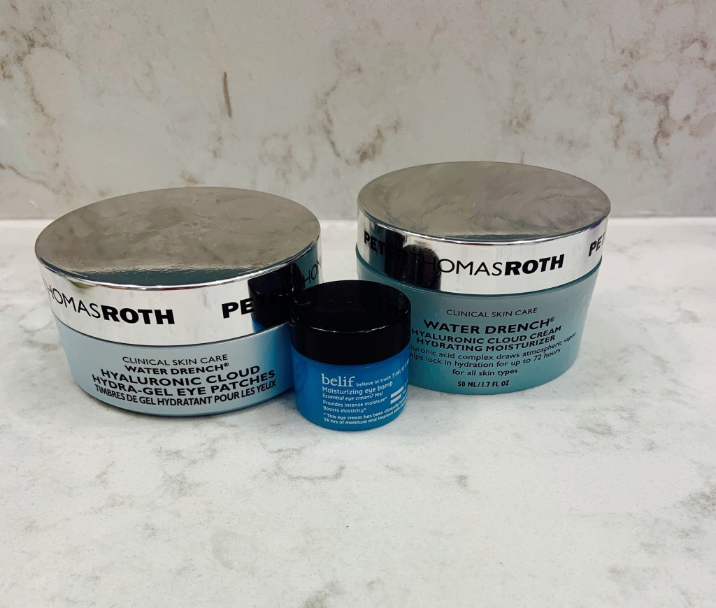My morning routine is not complete without these three products 1. Facial Radiance Pads, 2. Ultra Repair Barriair Cream, and 3. Coconut Skin Smoothie Priming Moisturizer. Faithfully using these products for a while now, I wouldn’t think twice about walking out of the house in the morning without makeup. I’ve never been happier with my skin. All of these I purchased from Sephora. At night time I switch it up and use Peter Thomas Roth Water Drench. I also use Peter Thomas Roth Hyaluronic Cloud Hydra-Gel Eye Patches once a week to freshen up my tired mommy eyes. Part of my nightly routine is also the Belif Moisturizing Eye Bomb. It’s the little pick me up my eyes need each night.